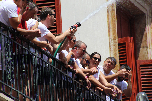 L'alcalde de Sagunt, Quico Fernández, donant el tró d'avis perquè comence la xopà del dissabte passat, des de la balconada de l'Ajuntament de Sagunt
