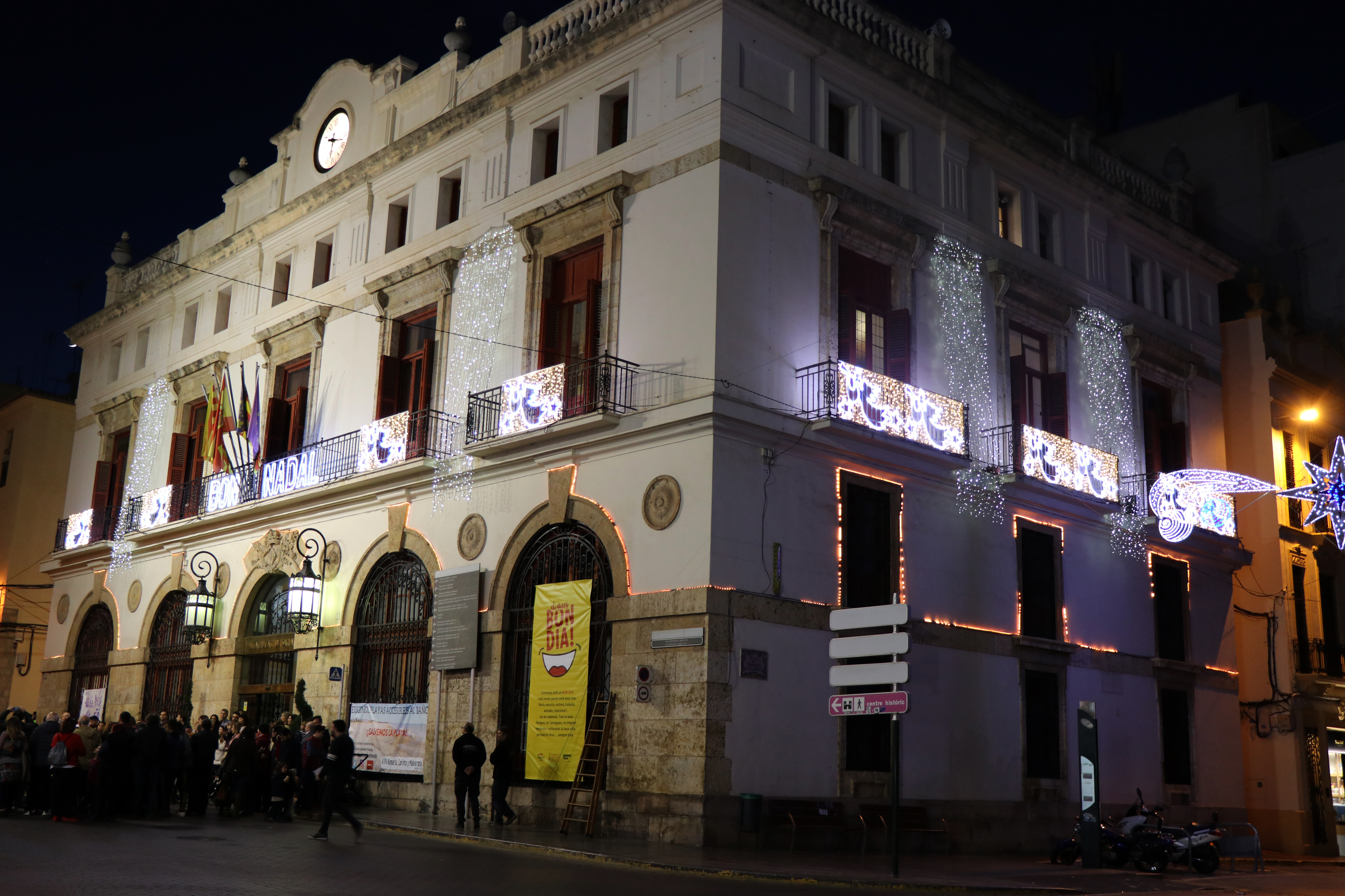 El tradicional enllumenat nadalenc que decora el municipi de Sagunt durant les dates festives ja està encés. L'acte d'inauguració ha tingut lloc esta vesprada a la porta de l'Ajuntament de Sagunt i ha comptat amb la presència de l'alcalde, Darío Moreno, i la regidora de Comerç i Mercats, Gloria Parra, els qui han sigut els encarregats d'encendre la il·luminació junt a les Falleres Majors de Federació Junta Fallera de Sagunt, Sandra Ordiñaga i Aitana González. També han estat presents altres regidors de la Corporació Municipal, així com representants de diferents grups polítics. L'acte ha estat amenitzat pel cor infantil del col·legi Villar Palasí, que han delectat els veïns i veïnes de Sagunt amb un repertori variat de nadales.
