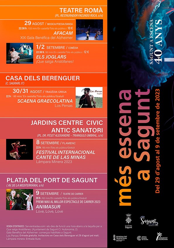El dimarts 29 d'agost a les 22.30 hores se celebrarà la XIX Gala Benèfica de l'Alzheimer de AFACAM amb un espectacle en castellà de música, poesia i dansa. El cost de l'entrada per a gaudir d'aquesta gala de 120 minuts, que tindrà lloc en el Teatre Romà, és de 10 euros.