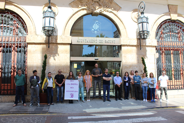 La Corporació Municipal, el funcionariat, així com la ciutadania, han guardat un minut de silenci a les portes de l'Ajuntament de Sagunt, de la Tinència d'Alcaldia del Port de Sagunt i del Centre Cívic Antic Sanatori en senyal de condemna i repulsa per un nou presumpte cas d'assassinat masclista.