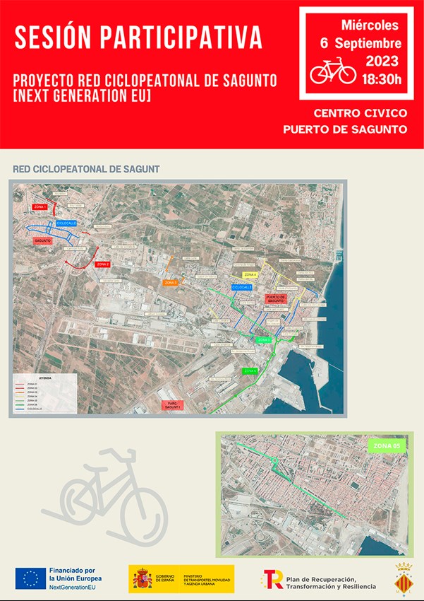 La regidoria de Mobilitat Urbana de l'Ajuntament de Sagunt durà a terme demà, 6 de setembre, una jornada participativa, oberta a tota la ciutadania, en la qual exposarà el projecte de xarxa ciclopeatonal del municipi. Així mateix, la sessió, que tindrà lloc en el Centre Cívic del Port de Sagunt a les 18.30 hores, servirà per a resoldre dubtes i recollir propostes per part del veïnat.