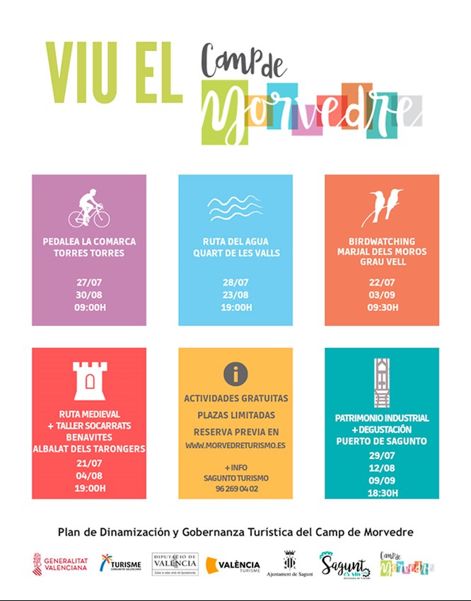 Cicloturisme, aigua, natura, gastronomia i patrimoni històric dels municipis de la comarca es promocionen en estes activitats. Les places són limitades i cal reservar a través de la web de Morvedre Turisme