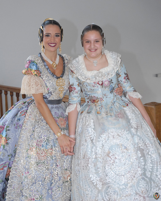 Inés Miret Herrero té onze anys, estudia 5é de primària en el col·legi María Inmaculada del Port de Sagunt, pertany a la falla Plaza Rodrigo, d'on va ser Fallera Major Infantil el passat exercici 2018. Paula Marrón Pérez té 24 anys, és graduada en relacions laborals i pertany a la comissió de la falla La Victòria, on també va ser Fallera Major l'any 2018.
