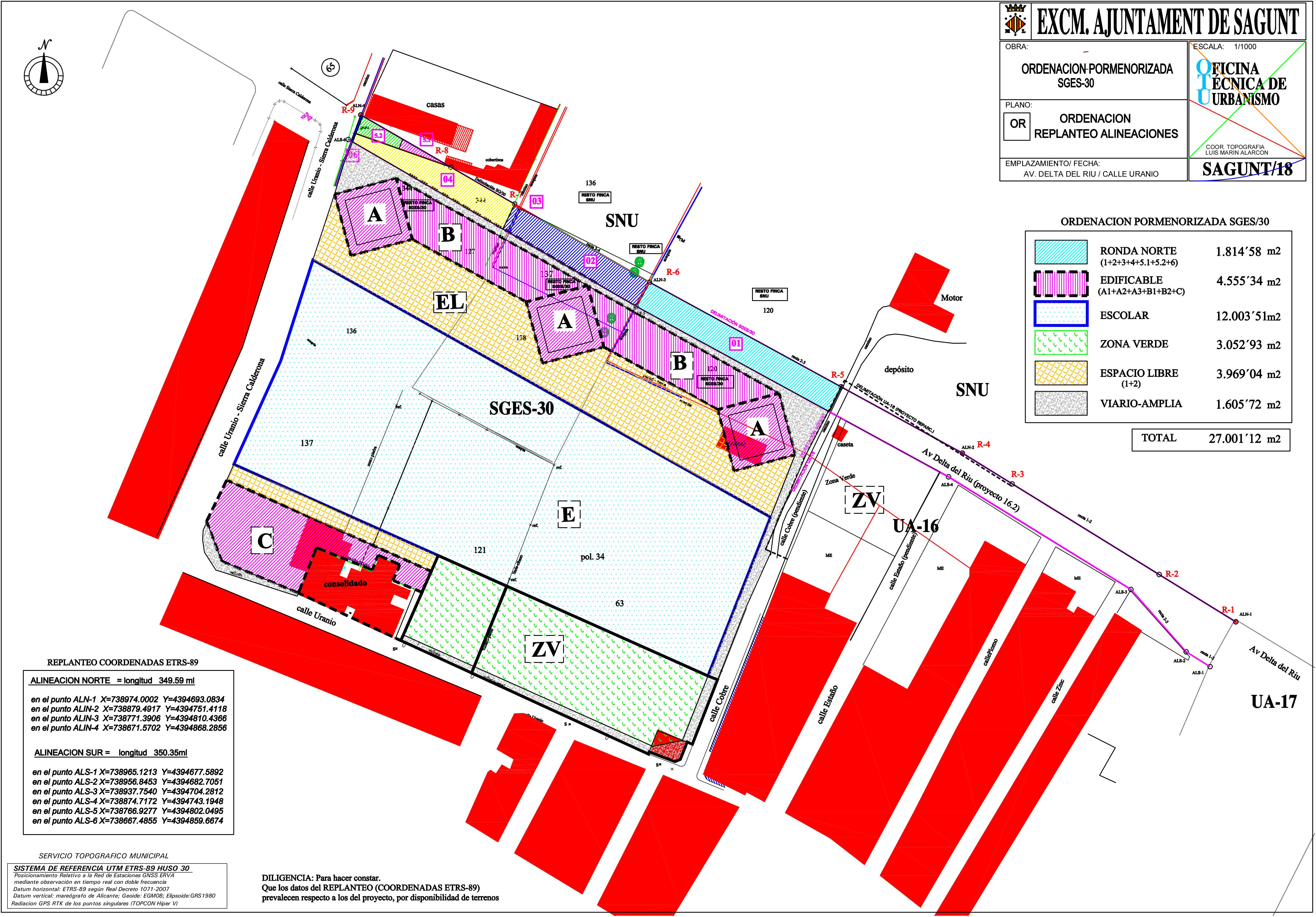 A continuació es mostren els plànols del projecte per a la proposta de plaça pública per al SG30.