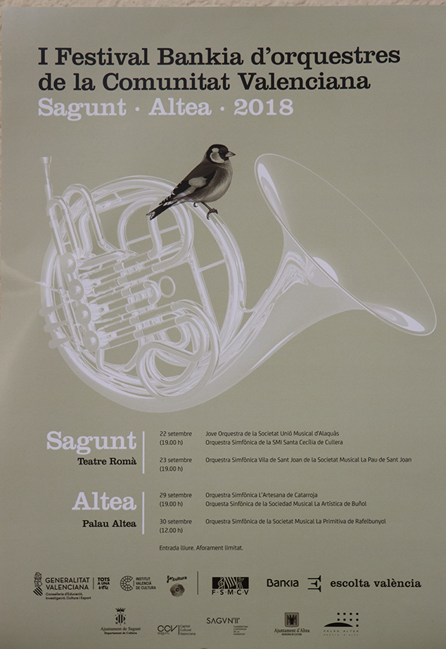 Este dilluns, 17 de setembre, ha tingut lloc en el Saló de Plens de l'Ajuntament la presentació de l'I Festival Bankia d' Orquestres de la Comunitat Valenciana 2018, patrocinat per Bankia en col·laboració amb el Institut Valencià de Cultura, i que se celebrarà en el Teatre Romà de Sagunt el 22 i 23 de setembre a les 19 hores. L'entrada serà lliure fins a completar l'aforament.