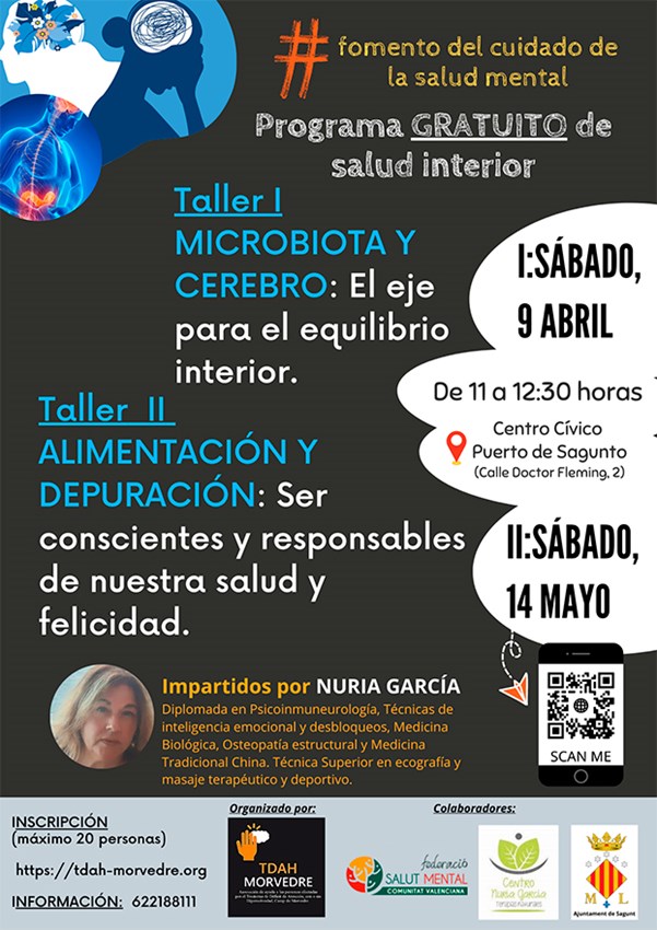 El programa està pensat per a entendre i treballar la relació de desenvolupament i funció del cervell amb la microbiòtica intestinal, i té com a finalitat la promoció de la salut mental a través de la modulació de la microbiòtica del tracte digestiu. Per a això, s'han preparat dos tallers: d'una banda, el Taller de microbiota i cervell (l'eix per a l'equilibri interior), en el qual s'abordaran aspectes relacionats amb el tub digestiu, la microbiota, l'eix intestí-cervell, els trastorns digestius i el sucre; i l'altre, titulat Alimentació i depuració (ser conscients i responsables de la nostra salut i felicitat), en què es parlarà sobre la dieta i com alimentar-se, què i com menjar, cuidar la cuina i beneficis de les depuracions.