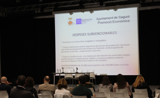 L'àrea de Promoció Econòmica de l'Ajuntament de Sagunt, en col·laboració amb ASECAM, ha impartit aquesta vesprada una xarrada a empresaris sobre les condicions i passos a seguir per a beneficiar-se de les ajudes del Pla per a la reindustrialització del Camp de Morvedre, aprovat per la Consellería d'Economia Sostenible i la convocatòria de la qual estarà oberta fins al dia 30 de novembre.