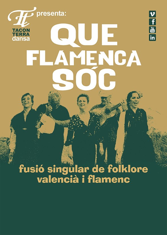 Que flamenca sóc, és un espectacle de dansa realitzat per la companyia ‘Taconterra Dansa’, en el qual des d'una visió fresca i creativa, s'oferix un acostament entre el folklore valencià i els pals més folklòrics del flamenc. Així doncs, a ritmes d’albaes, fandangos, buleries, cobles, rondalles o danses, els components valencians de ‘Taconterra Dansa’ ens embolicaran amb una harmonia perfecta, el més conegut de l'art flamenc i el més popular de la nostra tradició, convertint les dues músiques en una.