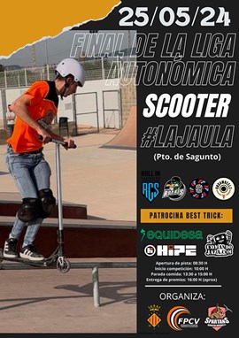 Sagunt serà la seu, este dissabte 25 de maig, de la final de la Lliga Autonòmica d'Scooter Freestyle de la Comunitat Valenciana. Este esdeveniment està organitzat per la Federació de Patinatge de la Comunitat Valenciana (FPCV) i el club Diverse Scooter Team, amb la col·laboració de l'Ajuntament de Sagunt. La final es durà a terme en el skatepark del Poliesportiu Municipal (internuclis) a partir de les 10 hores.
