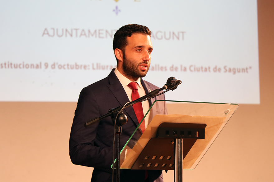 Després d'un minut de silenci en record de les víctimes de la pandèmia, l'alcalde de Sagunt, Darío Moreno, ha recordat que malgrat la situació que estem vivint «no hem d'oblidar que el més important no és quins actes es realitzen o com es duen a terme, sinó que tots els valencians i valencianes celebrem la nostra singularitat com a poble, reflexionem sobre la nostra evolució com a societat i mirem al futur ja que el 9 d'Octubre és més que una celebració, és una manera d'estar, una manera de ser».