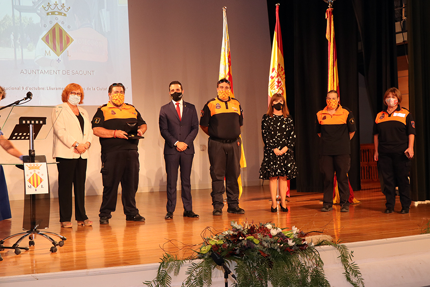Sagunt ha celebrat un any més la festivitat del 9 d'Octubre, Dia de la Comunitat Valenciana, però enguany amb la peculiaritat derivada de la pandèmia per COVID-19 que ha fet que no es duga a terme la tradicional baixada de bandera des del consistori ni la processó cívica. Este 2020, dels actes institucionals l'Ajuntament de Sagunt ha dut a terme el lliurament de Medalles de la Ciutat en el Teatre de Begoña, amb totes les mesures de seguretat necessàries, que enguany s'han concedit a Vicente Madrid, al Club Deportivo Acero i a les institucions públiques i privades pels servicis prestats durant la crisi de la COVID-19.