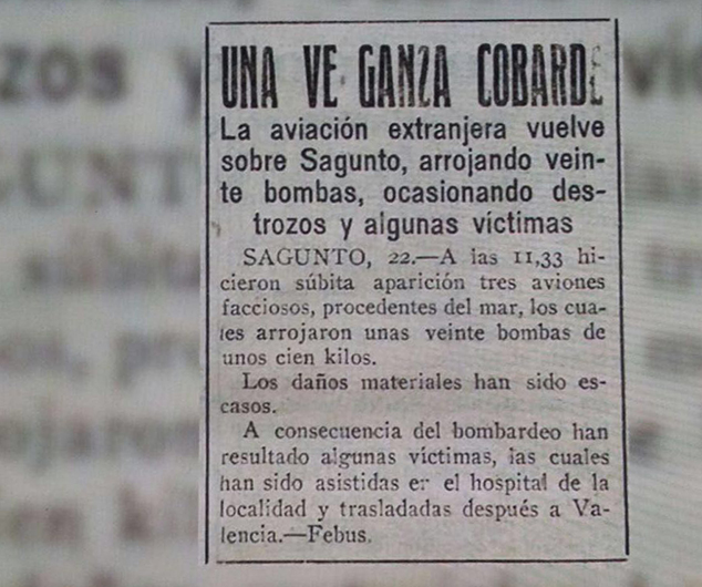 Estos actes se centren a recordar l'inici dels bombardejos italians sobre València i altres poblacions del litoral de la Comunitat Valenciana l'any 1937, entre les quals està el municipi de Sagunt. València, aleshores capital de la República, i per tant seu del govern estatal, va patir el primer gran bombardeig naval la nit del 14 de febrer del 1937. Es tractava d'un fet històric nou a Europa ja que l'aviació i la marina italiana van bombardejar ciutats i pobles que mai van constituir objectiu militar; van ser bombardejos a la població civil.