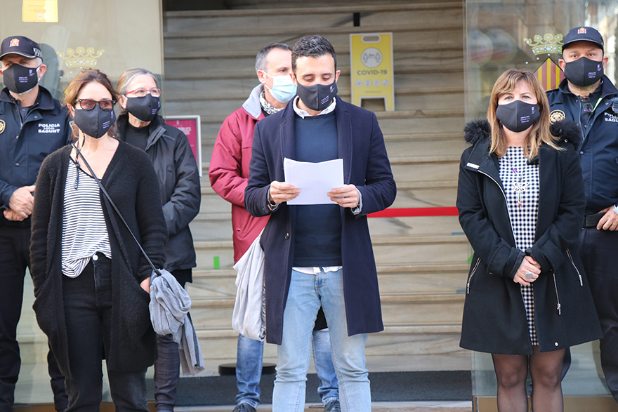 Durant l'acte, l'alcalde ha llegit un escrit dirigit a tota la ciutadania en el qual ha manifestat que «a vegades, escoltem amb una certa incredulitat a gent de la nostra ciutat, al nostre entorn, al mercat, al carrer, preguntant-se si en el nostre municipi existixen casos de violència; fins i tot persones que neguen esta violència, i ens agradaria poder dir que no, que ací a Sagunt les dones i els seus fills i filles no patixen cap tipus de maltractament, però esta sabeu que tristament no és la resposta».