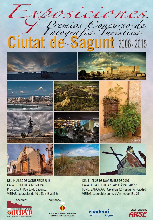 La delegació de Turisme programa de nou l’exposició dels 10 últims guanyadors del concurs de Fotografia Turística “Ciutat de Sagunt”. La mostra es podrá gaudir fins al divendres 25 de noviembre en la Casa de Cultura Capellà Pallarés de Sagunt.