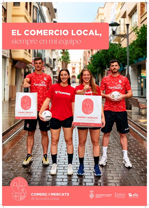 Treball en equip, sacrifici, excel·lència, humanitat, no són només els valors que definixen el comerç de Sagunt. Estos valors també són compartits per figures de la gastronomia com la xef estrela Michelin Vicky Sevilla, o les jugadores i els jugadors dels equips professionals d'handbol de la ciutat de Sagunt: el Club Balonmano Morvedre i el Club Balonmano Puerto Sagunto. Tots junts, protagonitzen les diferents campanyes posades en marxa al setembre per la Regidoria de Comerç i Mercats de l'Ajuntament de Sagunt.