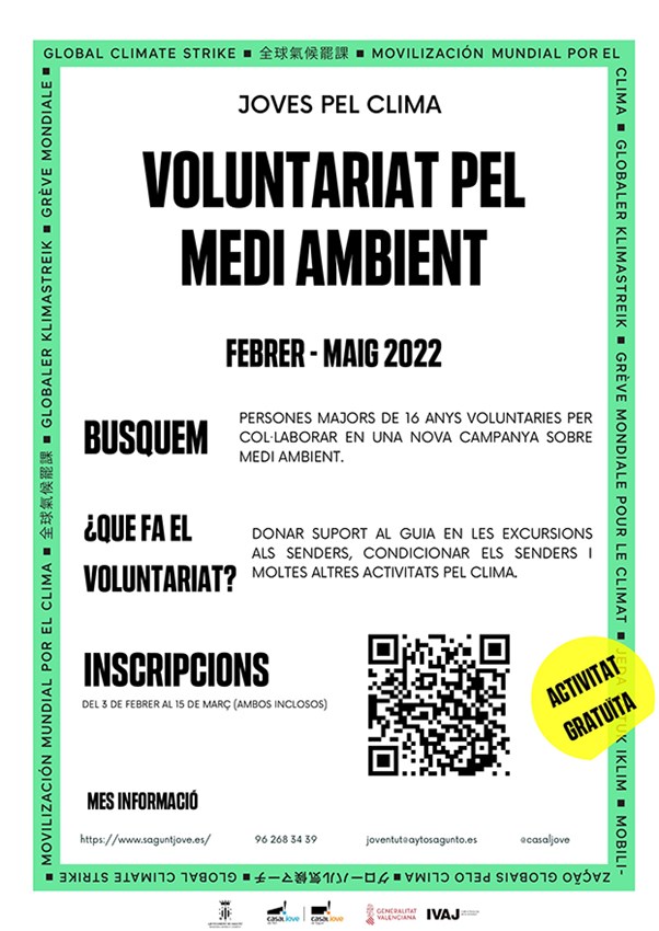 La Regidoria de Joventut i Infància de l'Ajuntament de Sagunt ha obert les inscripcions per al programa de voluntariat pel clima a totes les persones majors de 16 anys que desitgen participar en la iniciativa.